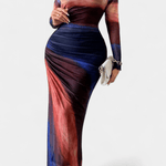 Saga | Maxi kjolen er en hyldest til tidløs elegance og raffineret håndværk. Den kropsnære silhuet følger kroppen med en klassisk rund hals og lange ærmer, mens et let gennemsigtigt lag tilføjer eterisk lethed. Den høj-lav nederdel skaber bevægelse og dybde, så kjolen lever i særlige anledninger og giver en diskret autoritet til enhver garderobe. Designet tiltaler samleren af kvalitetsøjeblikke og står som en investering i en tidsløs æstetik, hvor håndværk og materialer udgør en følgesvend gennem årene.