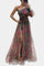 - Akvarel-lignende mønster og blomsterapplikation i taljen tilfører romantik uden at forstyrre den kølige elegance.