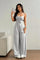 • Pasform og silhuet: Rund hals, minimalistisk snit og en løs, men kontureret pasform, der bevarer dragtens elegante linjer.
