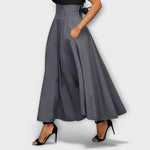 Stine | Maxi Nederdel løfter din garderobe til en ny dimension med en tidløs elegance, der tiltaler den kræsne. Den er skabt med omtanke for detaljer, og faldet er gennemarbejdet i en konstruktion, der bevarer formen gennem aftenen og giver en selvsikker holdning i enhver anledning. Det rene snit og den klassiske silhuet gør den velegnet til både festlige begivenheder og sofistikerede sammenkomster. Tilgængelig i sort, grå og rød, så du kan fremhæve din personlige stil. Pleje er enkel med håndvaskanvisning for at bevare farver og struktur. En investering i tidløs værdi og samlerappel, som nemt tilpasses både formelle og afslappede looks. Maxi snit med flydende fald der fremhæver taljen og skaber en elegant silhuet.