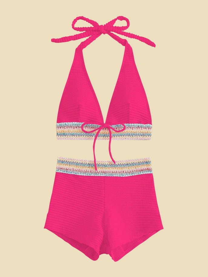 Den ekstra brede, strukturerede linning former blidt din talje og sikrer en glat, flatterende silhuet. Så føler du dig straks selvsikker og elegant på stranden eller ved poolen.