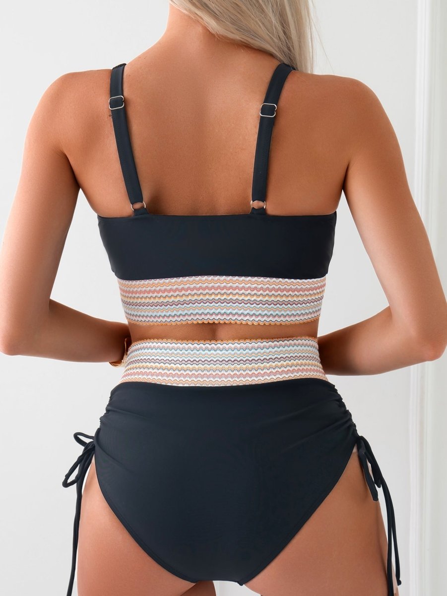 De farvede kontrastdetaljer i linningen giver bikinien et friskt, sommerligt touch og gør den til et elegant blikfang på stranden eller ved poolen.